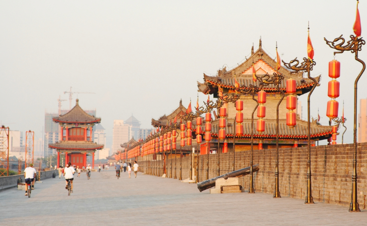 Circle Xian's beautiful old town by bike along the magnificent city walls, admiring views over its plethora of historic sights as you go.