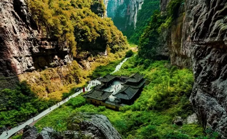 Discover the magnificent nature of the Three Natural Bridges National Park in Wulong, walking through the lush valleys and gorges to admire the spectacular geological wonder of the three bridges themselves.