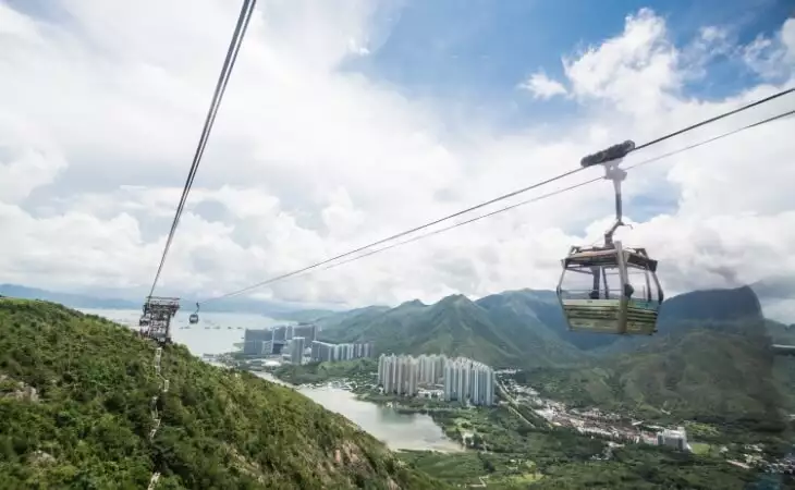 Soar over the spectacular landscapes of Hong Kong's Lantau Island on the Ngong Ping 360 cable car, flying ever closer to the giant buddha perched serenely on his hilltop.