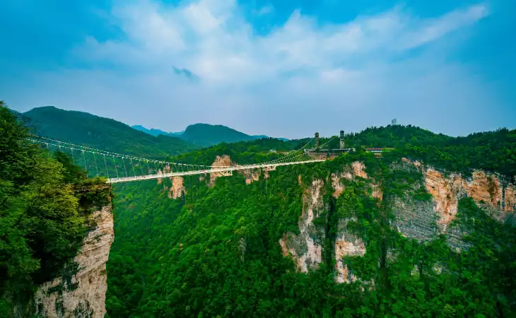 Take an exhilarating walk along Tianmen Mountain's famed glass skywalk, aptly named the "Walk of Faith". Soak up unparalleled views of Zhangjiajie's mountains, valleys, and forests.