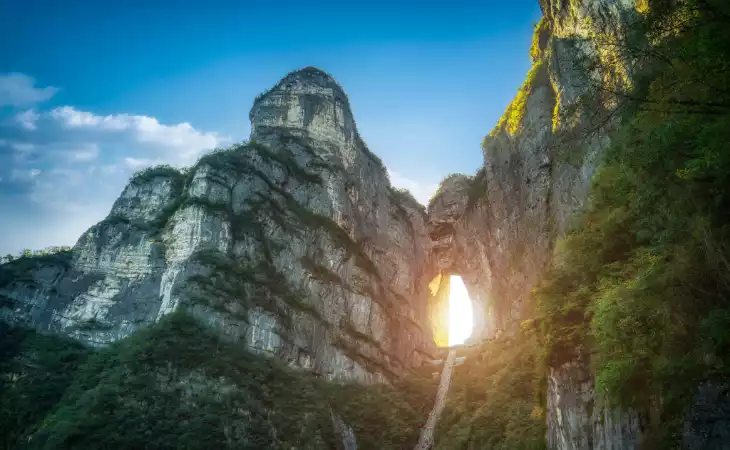 Stride up the 999-steps at Tianmen Mountain, leading you to Heaven's Door, a huge 30-metre wide cave standing at the top of the Stairway to Heaven.