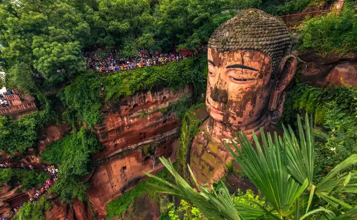 Visit the world's largest stone-carved Buddhist statue, the Grand Buddha of Leshan. Take a short boat ride to see this monumental statue towering over the waters below.
