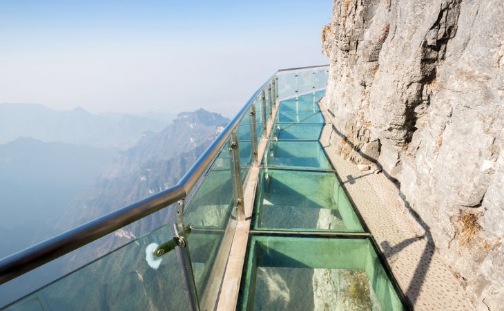 Stroll across Zhangjiajie's grand canyon, stepping foot on the world's highest glass bridge at a staggering 360-metre height and spanning an impressive 430-metres!