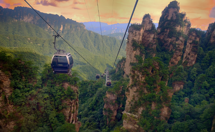 Soar up the heights of Tianmen Mountain in China's longest cable car, a 7-kilometre journey taking approximately 40-minutes. Gaze over the lush valleys, winding rivers and towering peaks all the way to 'Heaven's Door'.