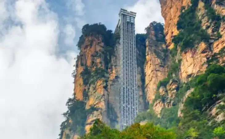 Feel your pulse race as you rise above Zhangjiajie's towering sandstone pillars on the Bailong Elevator, the world's tallest outdoor lift, standing at a height of 326 meters.