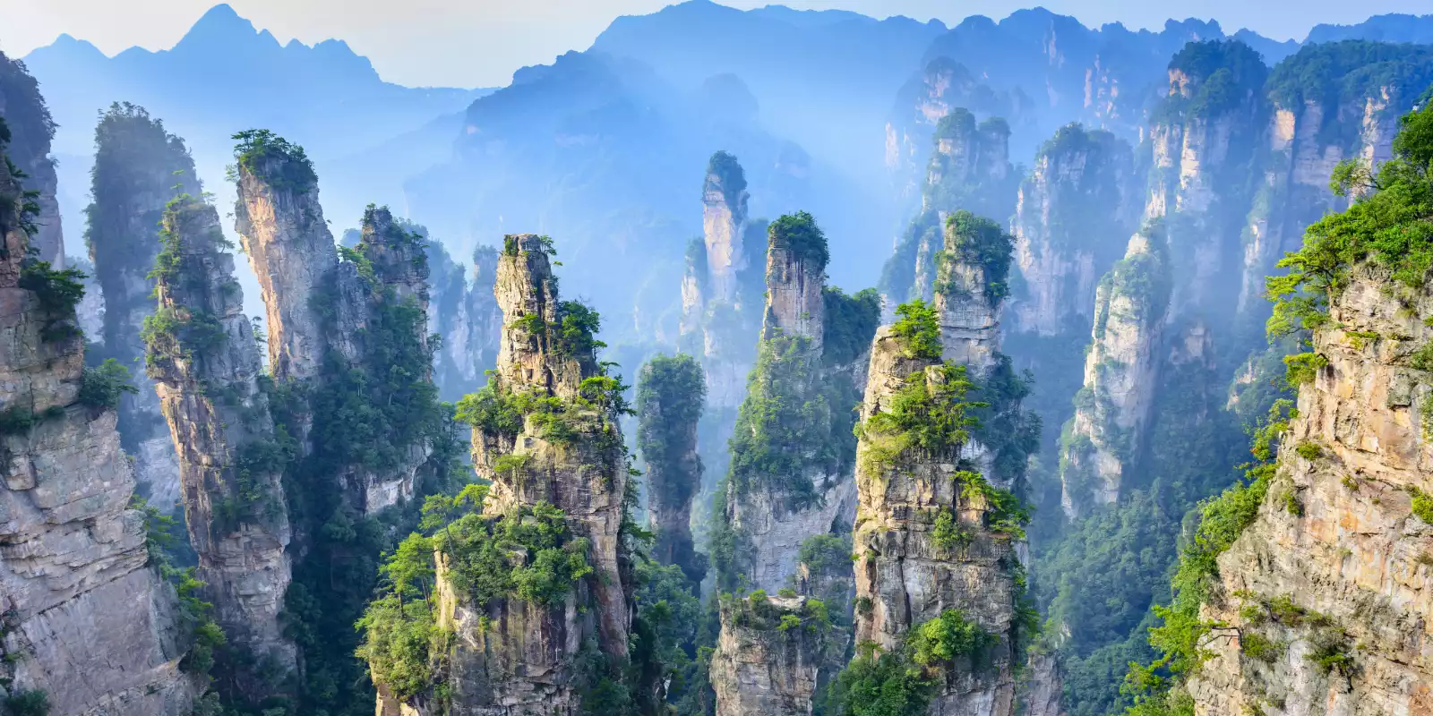 Discover the striking beauty of Zhangjiajie's sandstone pillars and dramatic landscapes