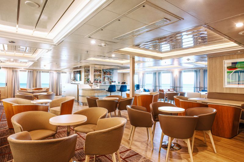 The MS Santa Cruz II is one of the most comfortable and stylish ways to experience the Galápagos Islands. Purpose-built for exploration yet designed with guests in mind, the ship carries just 90 passengers in 50 cabins, creating a relaxed and intimate atmosphere at sea. Bright interiors, panoramic windows and generous deck space ensure you’re always connected to the scenery outside.