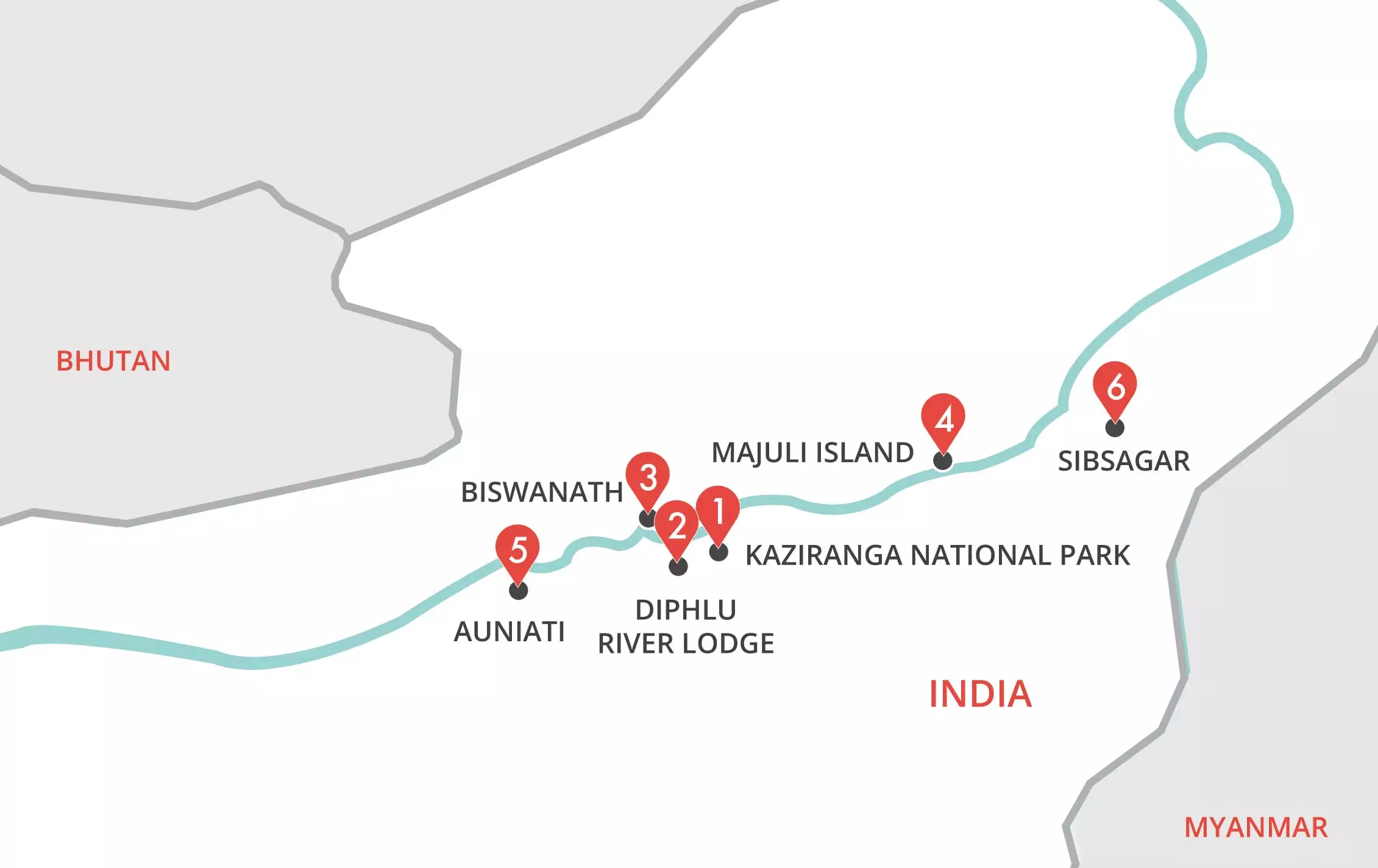 As you sail this fascinating river, you’ll witness and experience the real India. Voyage through an amazing array of landscapes from tea plantations and forests to pebbled shores and wildlife havens. Along the way, you'll explore riverside villages, meet the tribal people that love there as you learn about life along the river, explore country towns via rickshaw and visit a UNESCO-listed national park in search of the greater one-horned rhino!