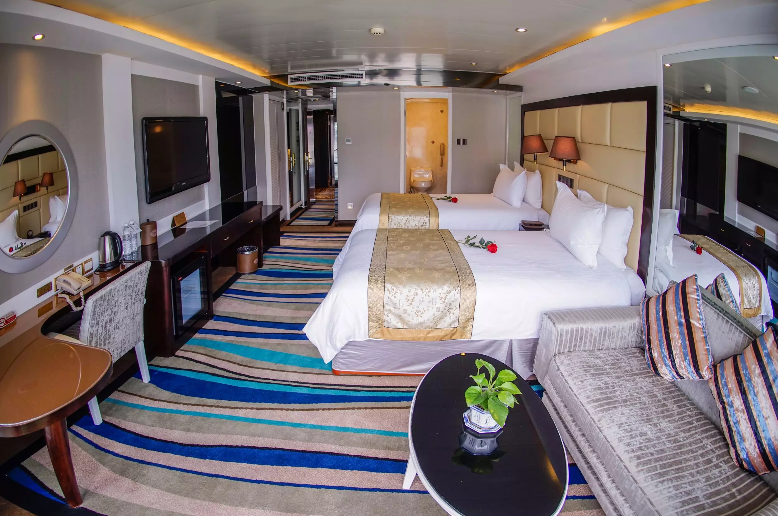 Dining - Savour every mealtime in the ship’s elegant dining room, where international and Chinese cuisine is expertly prepared. Guests upgrading with an amenities package can enjoy exclusive access to the intimate VIP restaurant and a la carte menu. Whether you're indulging in gourmet fare or ordering room service, you’ll find delicious options to suit every palate. The stylish onboard bar is open from morning till night – perfect for a relaxing drink at any time.