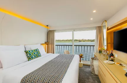 Newly renovated in 2023, take in the unforgettable sites of the legendary River Nile in comfort and style aboard this contemporary five-star river ship. Relax on the sundeck of this luxurious ship, enjoy the expertly prepared cuisine, take a dip in the pool or enjoy your favourite tipple at the bar.