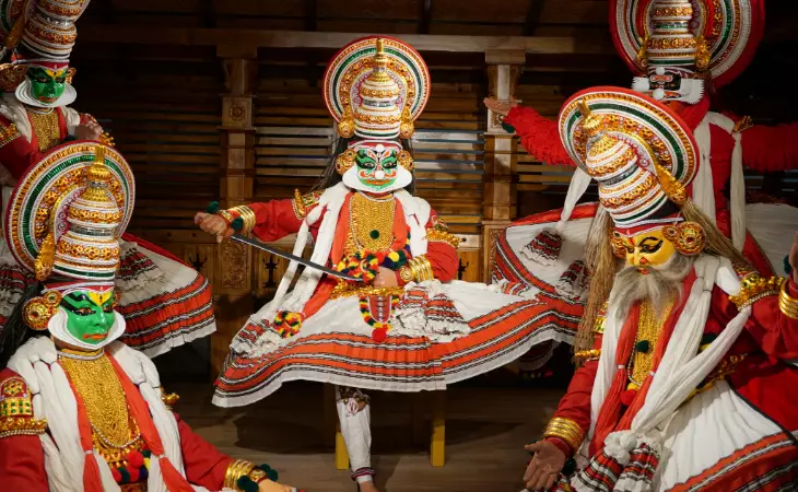 Witness a captivating Kathakali dance performance, a traditional art form rich in colour and expression