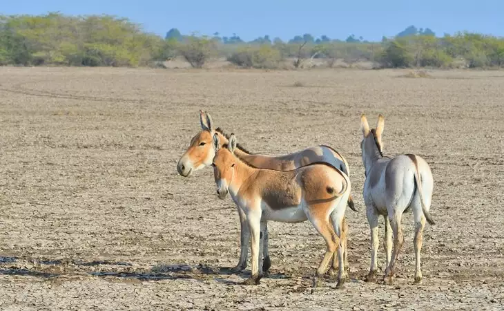 Embark on a safari through the surreal landscapes of the Little Rann of Kutch, a sprawling salt desert that is home to one of India's largest wildlife reserves, where you can spot flamingos, wild ass and white-footed foxes.