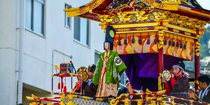 This spring festival celebrated in the mountain town of Takayama features elaborate antique floats, colourful illuminations and traditional music. It is considered one of the three most beautiful festivals in Japan.