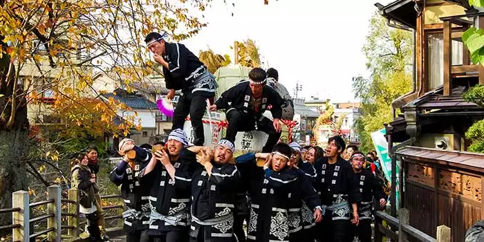 Beautiful, hand-crafted floats parade around the town for two nights and people gather for a traditional harvest celebration. In the evenings, food carts and portable shrines come out in force and there are lanterns and traditional music livening up the streets.