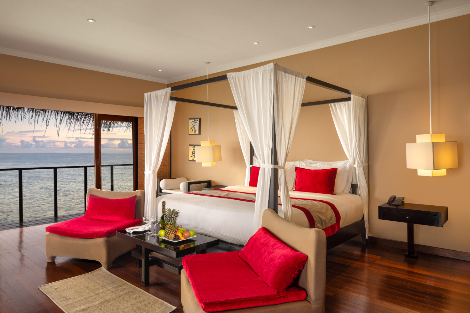 Adaaran Select Huduran Fushi boasts a multi-faceted dining experience with spectacular views accompanying almost every meal. Start the day with a breakfast buffet thern enjoy ethnic dishes, international cuisine, light snacks or pizza in a variety of restaurants and cafes. Choose from a range of fresh seafood and create a meal to your liking while you enjoy the ever-changing views of the Indian Ocean. Themed buffet style meals offer a combination of Maldivian and international cuisines to tempt discerning tastes nightly.