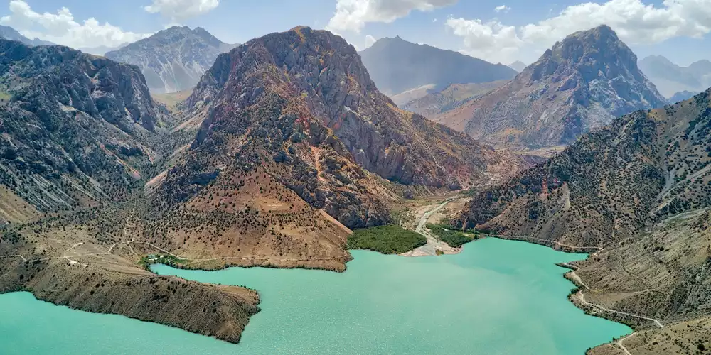 There is almost no aquatic life in the lake due to the high mineral concentration. Not far away, where the Iskanderdaria river creates a waterfall, there is a Juniper Tree with thousands of ribbons tied to it by visitors who make a wish that will come true another day.